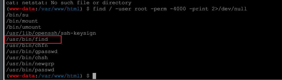 1 | find / -user root -perm -4000 -print 2>/dev/null |